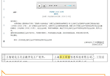 近日,上海市經(jīng)濟(jì)信息化委公布了2018年度上海市工業(yè)APP項(xiàng)目和應(yīng)用示范企業(yè)通知,上海異工同智信息科技有限公司憑借工智道化工行業(yè)數(shù)字化工廠軟件(下面簡(jiǎn)稱工智道軟件)榮幸登榜。 申報(bào)要求中有規(guī)定: 三...