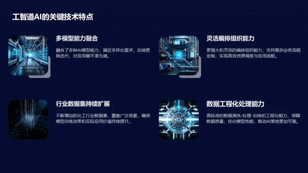 工智道AI的技術(shù)創(chuàng)新不僅體現(xiàn)在多模型融合與靈活編排能力上,更在于其“持續(xù)生長”的開放基因。產(chǎn)品以每1-2周的頻率迭代底層模型與數(shù)據(jù),每月發(fā)布新功能模塊(5月將上線3-4個新模塊),并通過行業(yè)數(shù)據(jù)集共建、小模型聯(lián)合精調(diào)等合作模式,與客戶共同推動技術(shù)進(jìn)化。針對中小型化工企業(yè)資源有限的痛點(diǎn),工智道AI提出“輕量化普惠”理念——支持本地化部署、算力資源合作及模塊化定制開發(fā),大幅降低企業(yè)使用門檻。